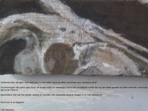 'gedichtje op hout', punische was op wrakhout (6,5 x 14 cm)